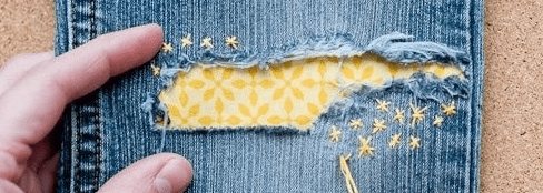 Техника Сашико подходит как для декора, так и для ремонта джинсов, а также любой другой одежды. Если на колене образовалась дырка, с изнаночной стороны подкладывается другая ткань и пришивается мелкими стежками с лицевой стороны.