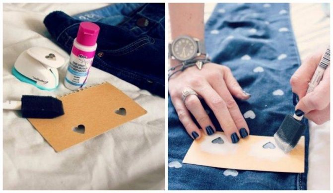 Чтобы сделать узоры на джинсах, можно воспользоваться трафаретом. Что нам нужно: