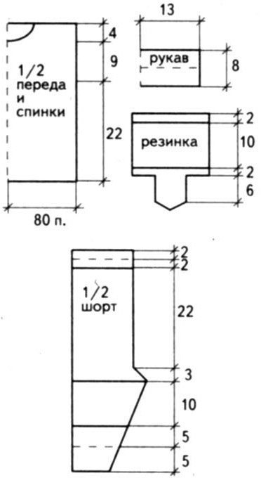 Довязав штанину до длины 11 (13, 15, 17, 19) см, переходим на спицы № 2,5 и вяжем резинкой 1 х 1 4 см. Закрываем петельки (л. п. над л. п., и. п. над и. п.).