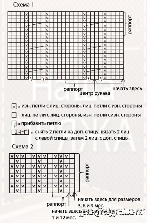 - Рукава вяжите по схеме, представленной ниже на рисунке.