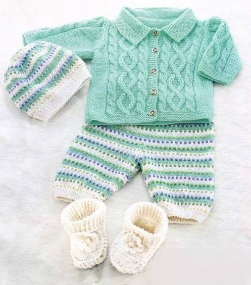 На сегодня это все. Надеемся, вам подойдут вязаные костюмчики для новорожденных, описанные в сегодняшнем мастер-классе. Желаем приятного вязания!
