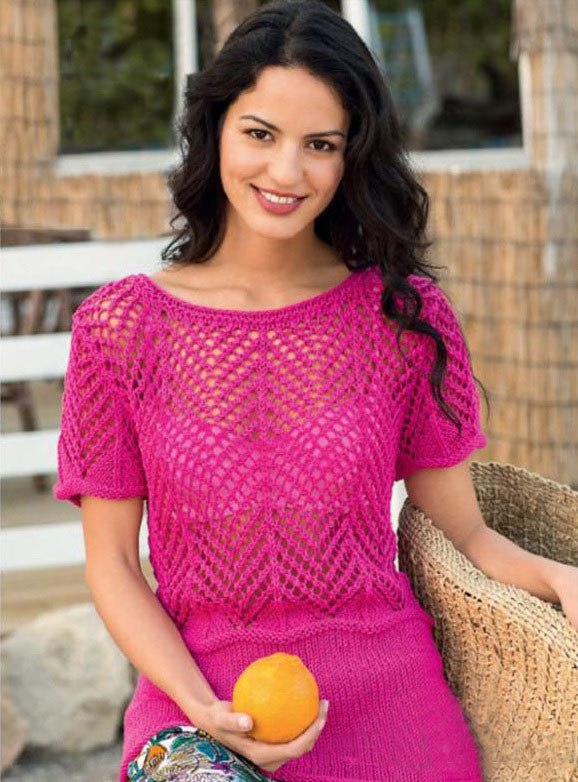 Вязание летнего пуловера с кокеткой из тонкой пряжи смешанного состава
