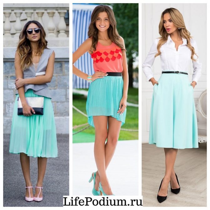 Кстати, лучше всего такое сочетание подойдёт девушкам цветотипа «зима», имеющим тёмные волосы и зелёные глаза. А если вы – голубоглазая блондинка, вам будет к лицу бледно-бирюзовая гамма.