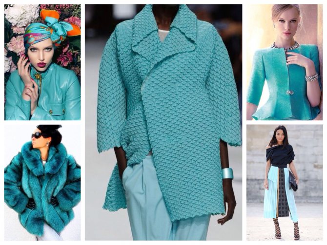Бирюзовый или лазурный цвет в одежде разного стиля всегда смотрится гламурно и впечатляюще, однако носить однотонные наряды долгое время не стоит. Рекомендуется подобрать к этому цвету аксессуары и сопутствующие элементы другой расцветки, которые гармонично смотрятся на моднице.
