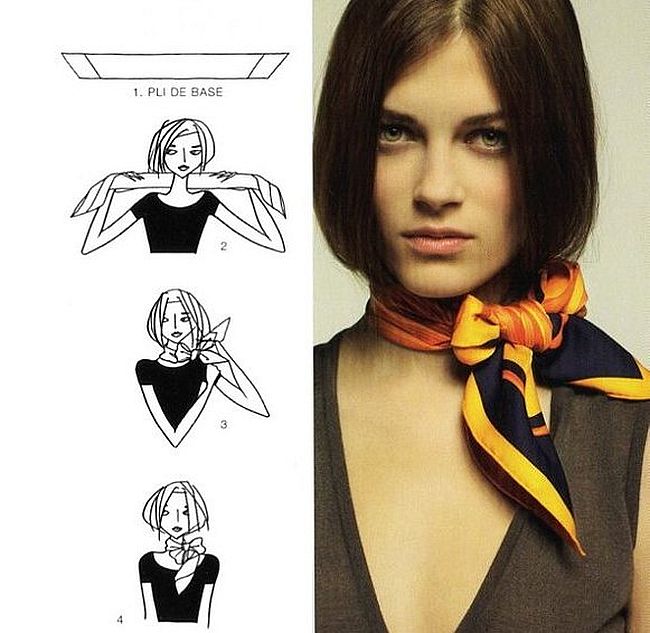 Очень эффектно смотрится, когда узел находится спереди или сбоку на шее. Некоторые девушки используют широкий платок и делают небольшой бант.