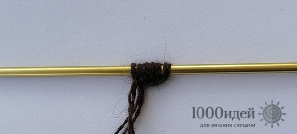 1 ряд – связать из каждой петли по 2 лицевые петли. При этом каждую петлю провязывать за переднюю и заднюю стенки. Всего должно получиться 12 петель. Распределить петли на 4 спицы по 3 петли на каждую спицу. Замкнуть петли вкруг.