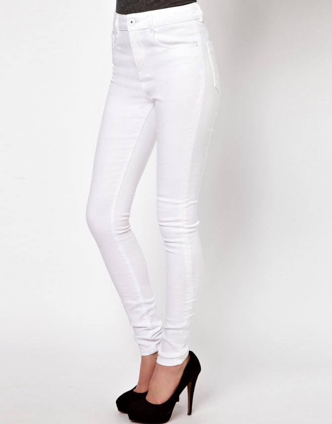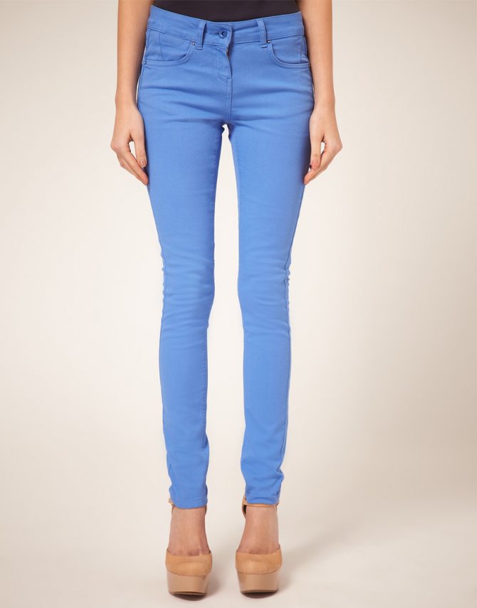 Иногда девушка, напротив, слишком худощава. Скинни обтягивают и без того тонкие ноги, привлекая к ним внимание. В этом случае следует выбрать светло-голубые, белые или бежевые брюки. Эти тона зрительно увеличивают. Также можно приобрести джинсы более свободного кроя.