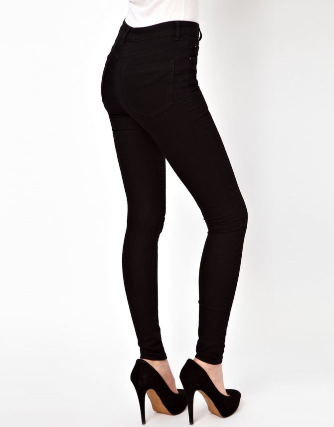 Облегающие джинсы могут иметь завышенную, среднюю или низкую талию. Высокая посадка приобрела популярность недавно. Ее преимуществом является возможность носить любое нижнее белье и любой, даже очень короткий верх, не опасаясь, что трусики будут выглядывать из-под пояса. Модель со средней талией — классический вариант, подходящий для любого возраста и фигуры. Джинсы с заниженной талией были в тренде несколько лет назад, но теперь утратили популярность. Их приобретают юные особы, чтобы с помощью короткого топа продемонстрировать подтянутый живот. Существенным недостатком такой модели является необходимость носить низко сидящие трусики и поддерживать фигуру.