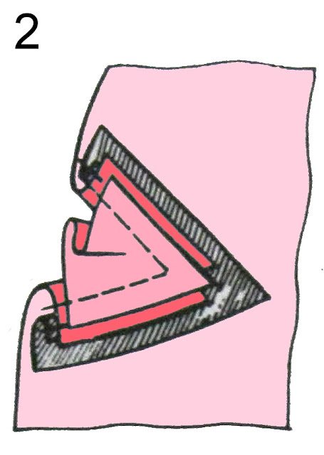 — замётываете подгиб ластовицы по периметру (предварительно загнув уголки) — накладываете на отверстие и примётываете (в уголках ластовица перекрывает разрез на 2-3 мм) — пришиваете по лицу ластовицы мелким швом назад иголку или ручной строчкой. Можно пришить и потайным косым стежком — это совсем пластично получается — в уголках можно сделать закрепки воздушной петелькой или мушкой — обмётываете припуски — можно с изнанки повторить это, те. наложить ещё одну ластовицу, не доходя 1 мм от шва, и пришить её впотай (потайным швом -прим. автора