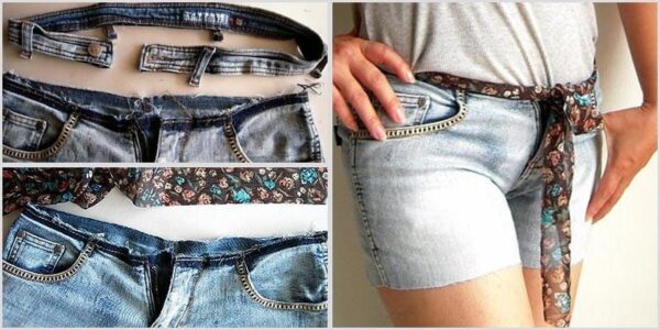 - Пришиваете новый пояс, делаете две или три строчки, вставляете резинку.