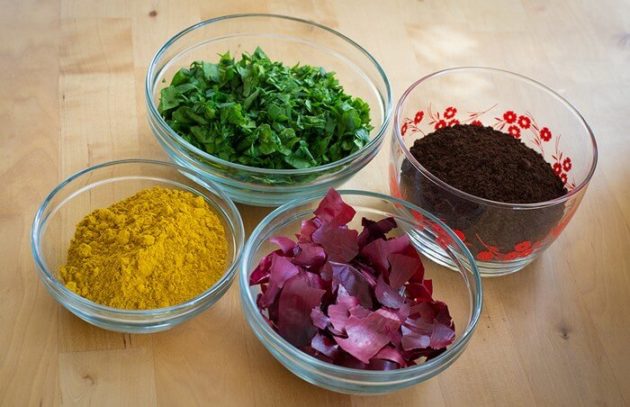 Совет: для закрепления результата применения природных пигментов используют эссенцию уксуса и соль.