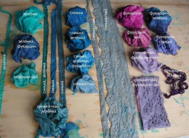Покрасить тюль можно подручными средствами: зелёнкой, марганцовкой, синькой. Подойдёт луковая и ореховая шелуха, ягодный и овощной сок, чай, кофе.