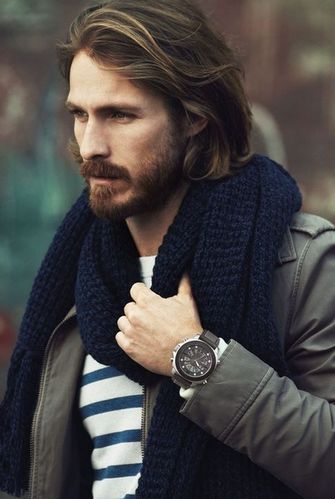 Нежелательно, чтобы шарф сливался с верхом. Зато его можно рифмовать с низом, то есть с брюками и джинсами. Если вы собираетесь выйти в синих джинсах, к месту будет синий шарф. Белый пуловер, надетый к чиносам цвета хаки, можно дополнить шарфом защитного цвета.