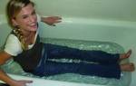- Опустите брюки или платье в содержимое таза минут на 20-30. Чтобы краска для брюк хорошо пропитала штаны, необходимо периодически кругообразными движениями перемешивать изделие в растворе. Окрашивание можно закончить, когда брюки приобрели цвет темнее, чем нужно. Когда они высохнут, цвет однозначно посветлеет.