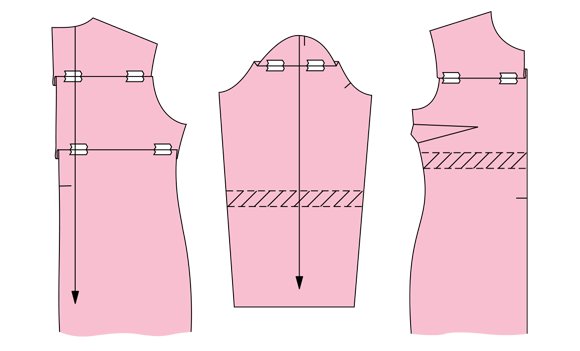 Изменить длину выкройки можно также поднимая или опуская линию низа (при незначительном изменении длины).