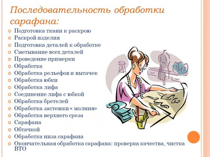 Приведенные этапы могут дополняться и меняться в зависимости от выбранного фасона изделия. Пропускать пункты нельзя, от этого будет зависеть внешний вид сарафана.