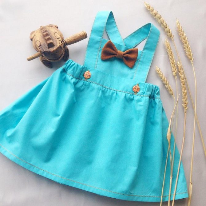 - Недопустим отказ от бретелей. В процессе использования сарафанчик рискует спадать, что будет неудобно хозяйке. Тем более, дети активно двигаются, а дополнительно поддерживаться в районе груди одежда не будет.