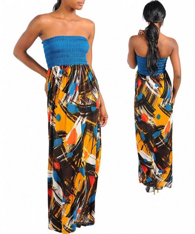Тем, кто не в состоянии справиться с шитьем модели по стандартной выкройке можно рассмотреть элементарные варианты. Например, допустимо просто соединить швами 2 куска полотна, которые выполнят роль спинки и переда. Дополнительно можно оставить разрезы по бокам, пришить бретели или воланы, декорировать изделие.
