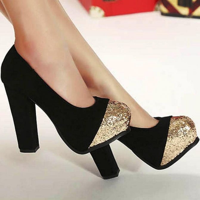- Офисные служащие предпочитают для повседневной носки черные туфли с толстым каблуком — такие модели пользуются даже большей популярностью, чем лодочки на шпильке.