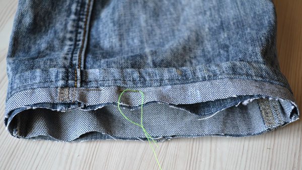 Если нет времени или возможностей изучать технологию, как правильно подшить джинсы на машинке, рассматривают вариант выполнения стежков вручную. Для этого применяется строчка «назад иголка». Такой вариант используется почти всегда, исключение составляет метод обрезки штанов с сохранением фабричного шва. В этом случае лучше выполнять действия на машинке.