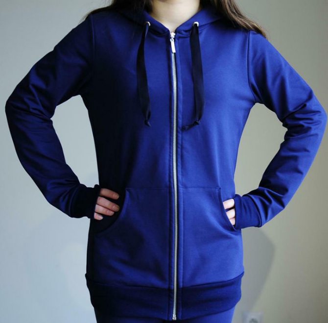 Предположим, вам стало интересно, как сшить толстовку с капюшоном, изображенную на следующем фото: