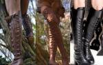 Ботфорты. Женские зимние высокие сапоги, закрывающие коленную чашечку полностью. Их первоначальное предназначение было защищать коленные суставы военных от возможных повреждений в бою. Сейчас они носят больше декоративный характер, хотя и очень хорошо справляются с сохранением хрупких женских ножек в тепле. Также очень уютно себя чувствуют ботфорты в сочетании с танкеткой, шпилькой и платформой, на плоском ходу. Данная модель хороша тем, что отлично сидит на полной ноге, но только в том случае, если одежда под ботфорты подобрана с учетом особенностей фигуры.