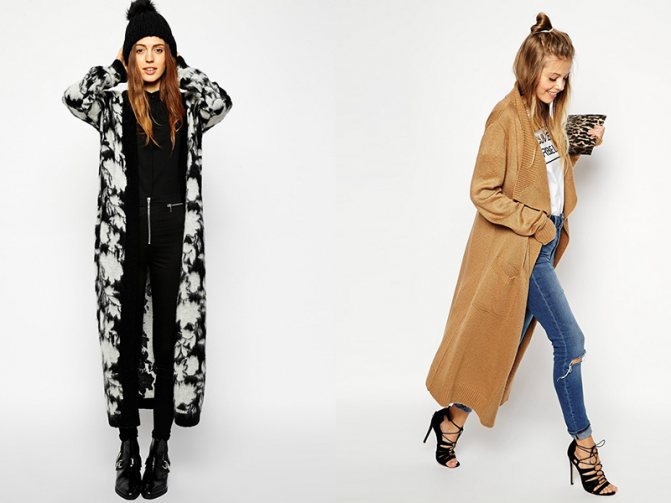 Совет! Кардиганы-макси до пола больше напоминают пальто. Носит их можно как с длинными, так и короткими платьями или юбками, шортами, брюками или джинсами.