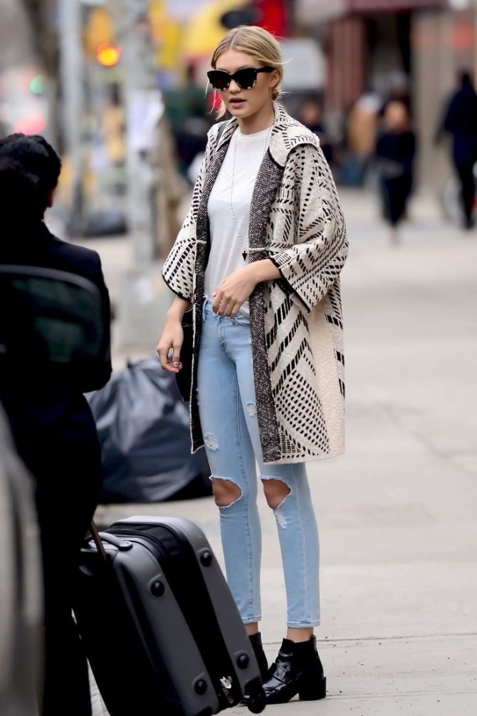 Поклонники стиля гранж смело могут отдаться фантазии и миксовать потертые джинсы и базовые майки с самыми бесформенными моделями кардиганов и провокационными вырезами