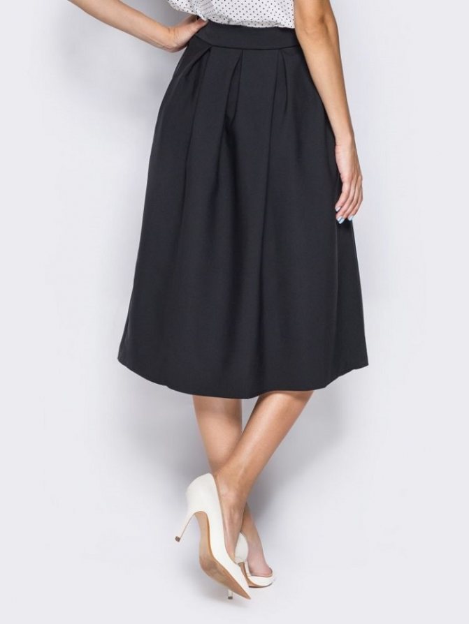 Превосходно выглядят пышные юбки средней длины. Такой крой добавляет женственности и элегантности девушке. Потому они идеально подходят для романтического свидания, похода в кинотеатр с друзьями, рабочей атмосферы.