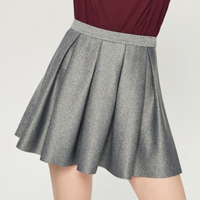 - Женщинам с не выраженной талией и бедрами (фигура типа прямоугольник) можно носить красивые юбки плиссе или выбрать фасон со складками. Это сделает нижнюю часть фигуры более объемной. При коротких ногах нужно отдать предпочтение модели с завышенной талией, а длина должна быть примерно до колена.