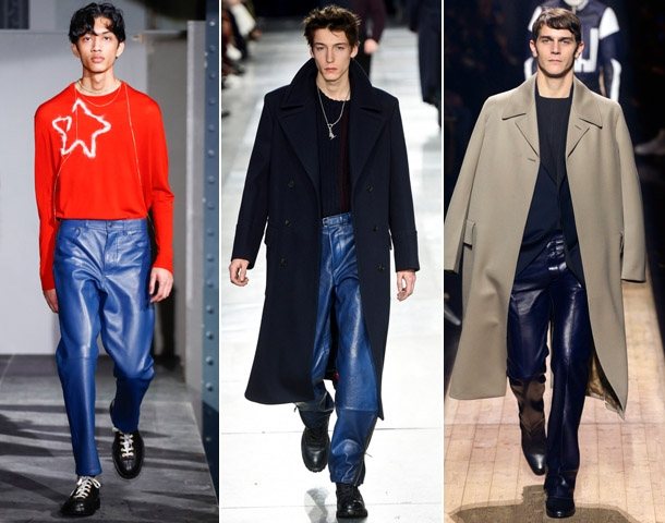 Это один из самых смелых трендов холодного сезона. Подобные изделия были представлены практически во всех модных коллекциях. Специалисты в мужской моде предлагают сильной части человечества присмотреться к прямым и слегка укороченным брюкам, пошитым из натуральной кожи. Такие брюки отлично впишутся в модный гардероб любого мужчины, и подойдут для любой жизненной ситуации.