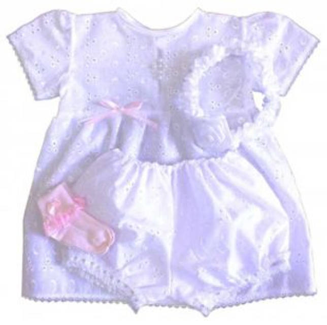 - Набор для крещения для девочек. Состав 100% хлопок, это главный плюс наряда. Подойдёт маленьким девочкам до года. В комплекте платьице, шортики, повязка на голову и носочки. Одежда украшена вышивкой и оборочками; белого цвета. На платье розовая лента, носочки розовые. Цена 1900 рублей.