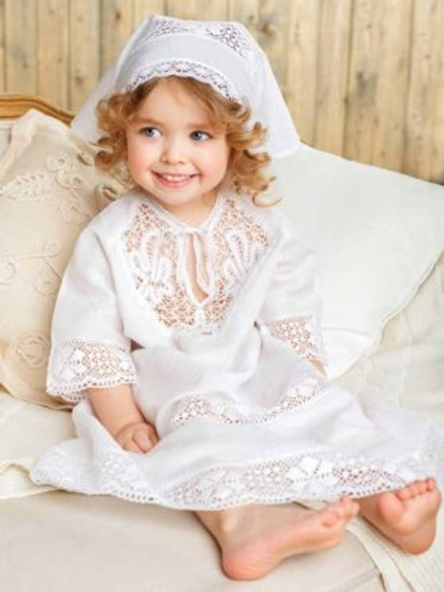 Традиционный наряд для крещения состоит из белой крестильной рубашки и крыжмы. В крестильный набор для женщины или девочки обязательно входит головной убор. При желании можно дополнить набор другими крестильными аксессуарами.