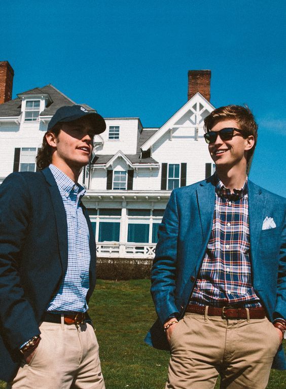 Во-вторых, одежда выдержана в спокойных природных цветах, здесь не будет ярких рубашек и пестрых рисунков, основные цвета – бежевые, коричневый, синий, серый, голубой, акцентами выступят желтый и зеленый, а основной рисунок – клетка.