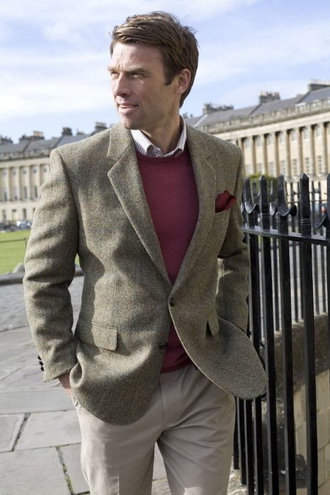 Кроме костюма в вашем гардеробе должен быть твидовый пиджак, который, кстати, в глубокую осень может заменить вам верхнюю одежду. Пиджаки могут быть классического кроя, если вы соблюдаете строгий дресс – код, а могут иметь и некоторый уклон в стиль кантри – обычно на них есть накладные карманы, а на локтях – кожаные латки.