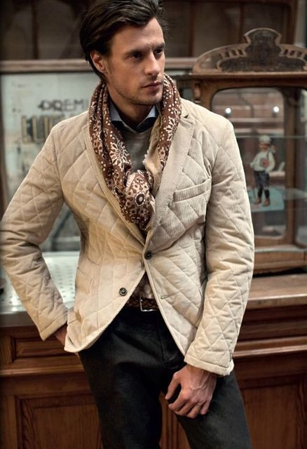В английском стиле это практически основной элемент: если в других стилях без него мужчинам можно обойтись, то английскому джентльмену положено иметь не один жилет – твидовый, вельветовый, однотонный, с пуговицами, с рисунком, в ромбик, вязаный, стеганый – тут уж сколько хватит у вас терпения ходить по магазинам, чтобы найти это все. Для холодной осени это вовсе незаменимый элемент, он может быть и аксессуаром, надетым под пиджак, и верхней одеждой. А зимой стеганые жилеты надевают под кашемировое пальто – и тепло, и модно, и стильно.