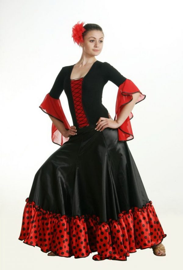 Одним из самых эффектных национальных костюмов является испанский. Наряды для женщин в Испании отличались открытостью и подчеркнутой сексуальностью. Женский костюм состоял из широкой юбки яркого цвета, корсета и блузы с открытым декольте, а иногда и оголенными руками.