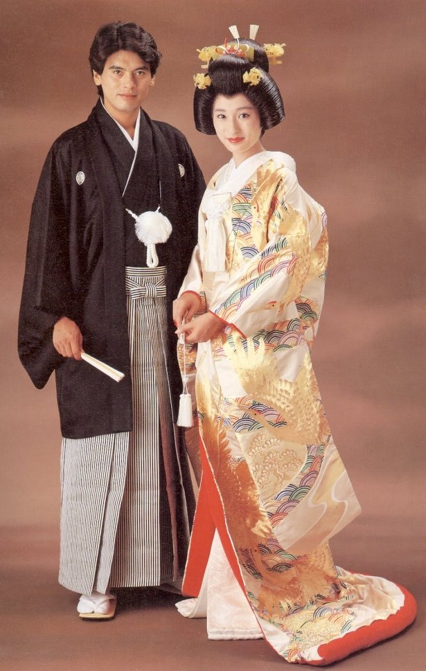 - Японцы. Их богатые тысячелетние традиции отразились в национальном костюме. Мужчины носили хакама – штаны, которые внешне напоминали юбку. Дополнял наряд кимоно или хаори – верхняя одежда со стоячим воротником. Крестьяне облачались в шаровары и рубаху, которую подвязывали веревкой. Женский гардероб — кимоно с широким поясом и различными украшениями. Внизу — несшитая по бокам юбка (косимаки).
