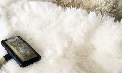- Чтобы мех овчины как можно дольше сохранял свою пышность, его необходимо расчёсывать. Для этого потребуется купить специальную щётку, которая продаётся в любом зоологическом магазине.