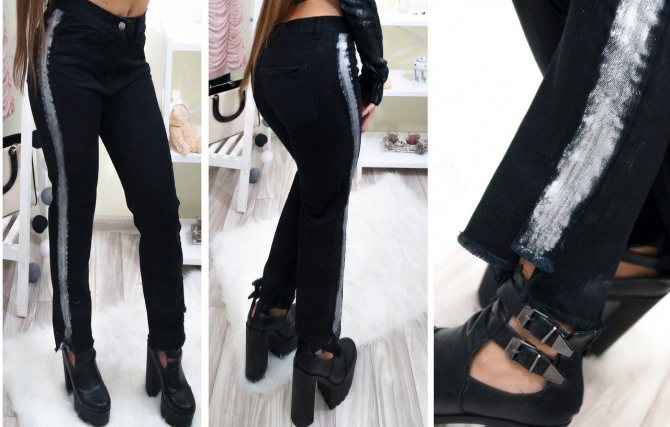 Любую классическую модель джинсов можно доработать при помощи декоративных элементов, создав по бокам полоски из любой фурнитуры, отделочных лент и страз. В результате может получиться современная оригинальная модель, которая удачно дополнит ваш гардероб. А вы сможете почувствовать себя настоящим дизайнером.