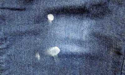 Пятна хорошо поддаются обработке ацетоном, спиртом, аммиаком и даже бензином, но агрессивные компоненты могут повредить структуру и цвет джинсовой ткани.