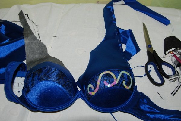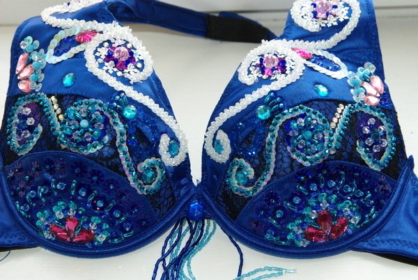 Лиф и пояс — основная часть костюма, которая требует 80% финансовых и трудовых затрат. Цвет бюстгальтера лучше подобрать в цвет костюма, но можно взять любой и закрыть его расшивочным материалом — пайетками, бисером, аппликациями, тесьмой. Сшив лиф и пояс вы можете менять юбки и у Вас появиться несколько вариантов Вашего костюма.