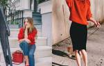 Уютный романтичный образ возможен при сочетании юбки средней длины и джемпера с открытыми плечами. Из юбочных фасонов выбирайте прямой крой или трапецию. Материалы юбки могут быть разные и зависят от плотности и объема свитера – от легкого хлопка, шифона и крепа до тяжелого твида или шерсти. Если верх нейтральных цветов (серого, белого, бежевого), юбка должна быть в ярком цветном контрасте. Иногда уместно и сочетание яркий низ – яркий верх.