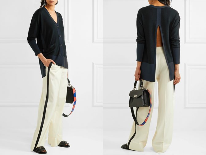 Что касается сумки, то к объемному кардигану стоит подобрать изделие небольшого размера, а короткую кофточку из тонкого кашемира можно носить с сумками-баулами, саквояжами, изделиями в духе оверсайз.