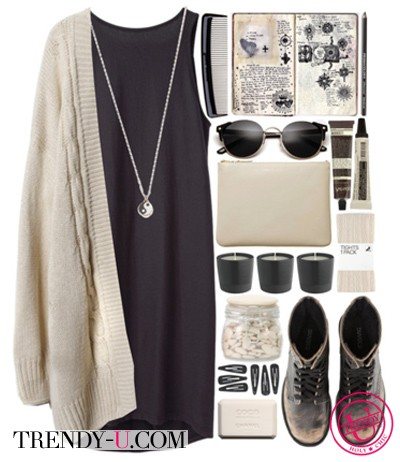 Если вам нравится идея сочетать несочетаемое, то, надевайте коричневый кардиган в стиле гранж (именно такие кардиганы очень любил и популяризировал незабвенный солист Нирваны Курт Кобейн) с шелковым маленьким черным платьем, см. фото: