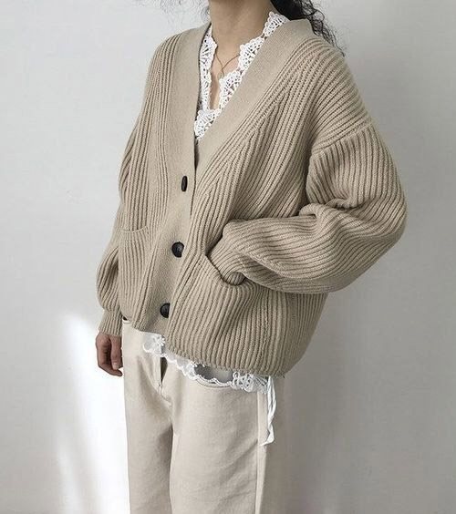 Коричневый или бежевый кардиган: с чем носить