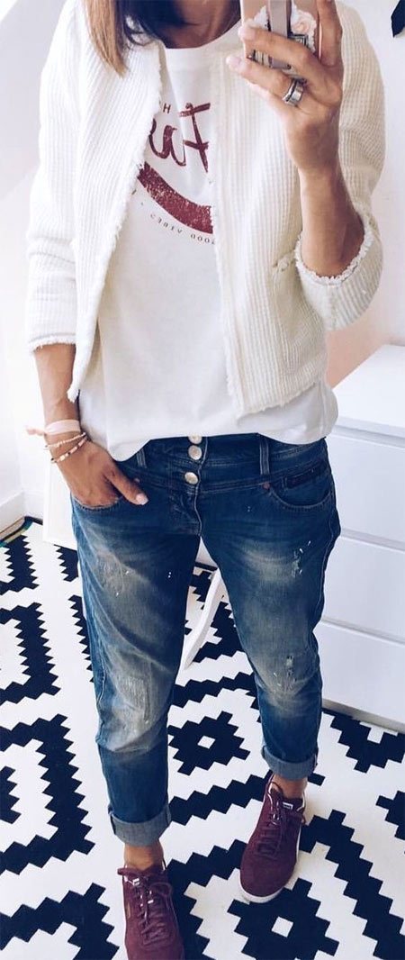 Белый кардиган в сочетании с джинсами