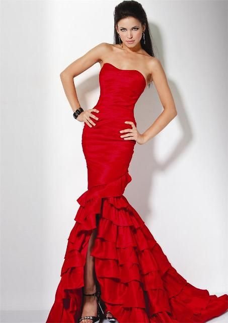 Воланы и открытые плечи, как главные тренды сезона не обошли стороной и модные красные платья. Подобные модели красных платьев выглядят очень нежно и женственно.