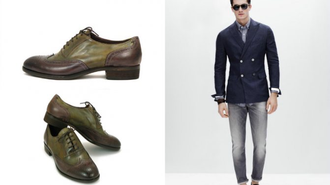 Парни, предпочитающие молодежный стиль, могут подбирать туфли нестандартного цвета. Главное, цвет обуви не должен быть контрастным по отношению к джинсам, следует выбирать сочетающиеся тона. Например, к серым джинсам можно приобрести обувь цвета хаки или темного оттенка зеленого. Выглядят такие сочетания необычно, но они сегодня в тренде.
