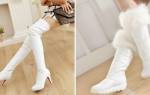 А в сочетании с шубами, изысканности и изящности образу придадут высокие яркие сапоги на шпильке.
